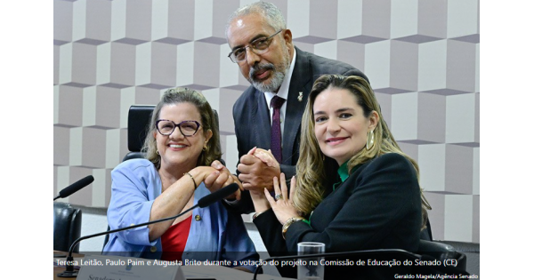 Teresa Leitão, Paulo Paim e Augusta Brito durante a votação do projeto na Comissão de Educação do Senado (CE)